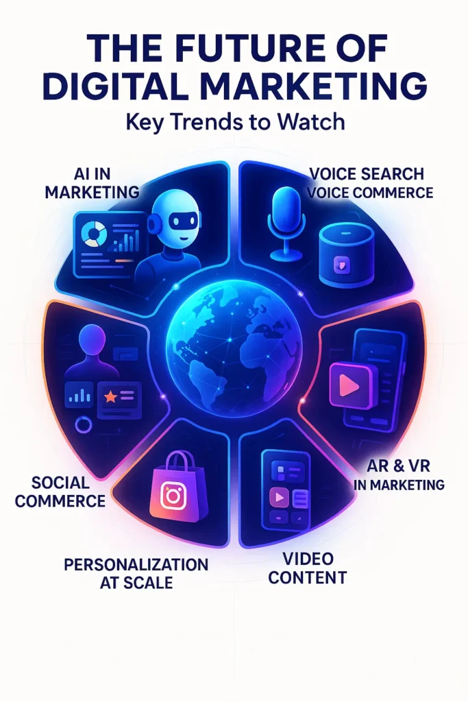 Smart technology and AI are changing the way brands connect with people every single day. In this post, we’re exploring six emerging digital marketing trends that are shaping both the present and the future. We’ll look at how they’re flipping the script on how businesses reach their audience. From AI & voice search to VR & personalization, these trends are helping marketers stay ahead of the curve. So whether you run a business, work in marketing, or are just curious about where things are heading—stick around. Let’s jump in.
